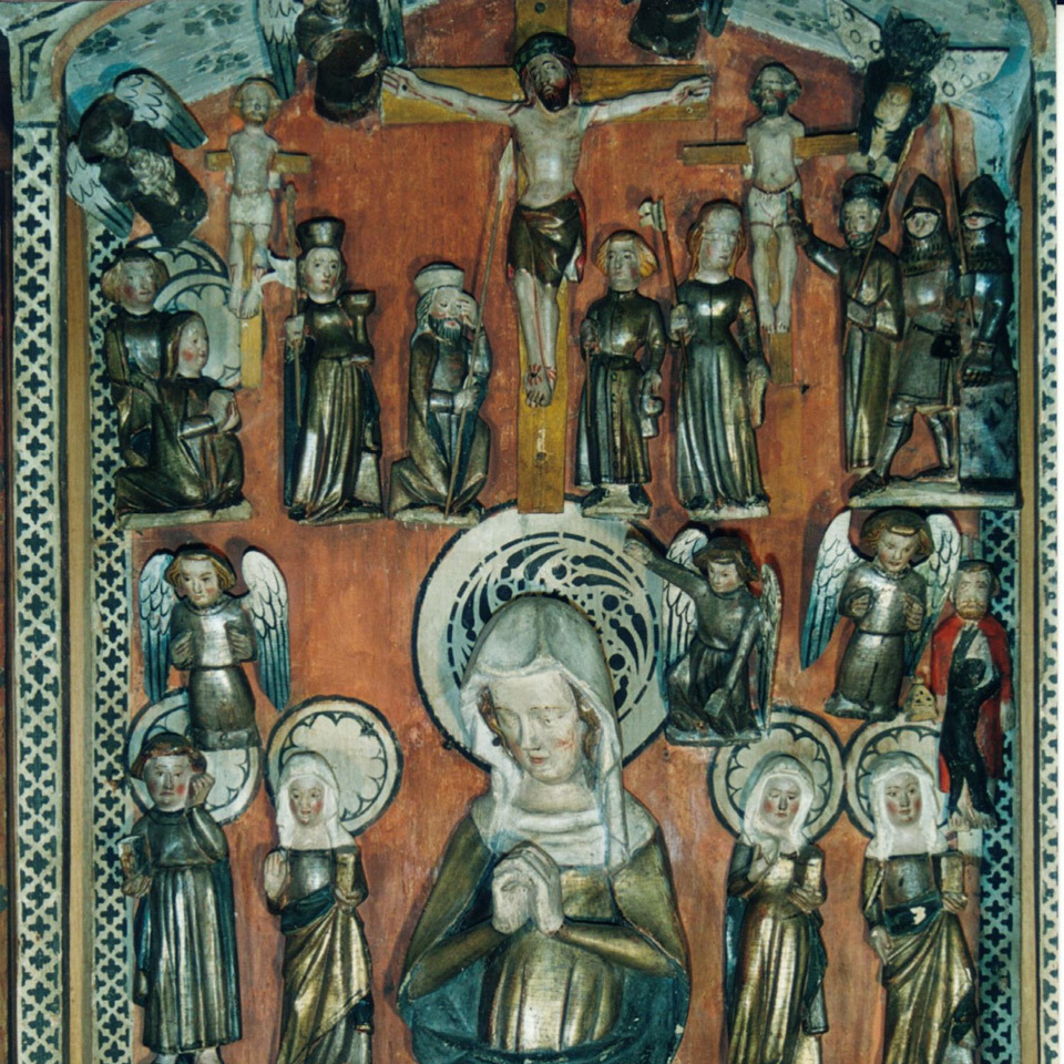 Nel 1189 Tommaso I di Moriana aveva concesso ai certosini i diritti sulla montagna di Orgevallis, e, due anni più tardi più tardi, gli dona alcune terre nella località detta “Losa”. La presenza certosina in loco però durò pochi anni: nel 1198 i certosini della Losa ottennero in dono le terre di Montebenedetto e del vallone dell'Orsiera, presso Villar Focchiardo, e già nel 1200 la comunità risultava essersi trasferita dalla Losa a Montebenedetto, forse a causa dei frequenti dissidi che insorgevano con la popolazione locale in merito allo sfruttamento dei pascoli. La primitiva certosa fu quindi trasformata in cappella e dedicata alla Vergine della Pietà. L'esistenza di una cappella già precedentemente all'arrivo dei certosini non è certa, tuttavia alcuni indizi documentari ed alcuni elementi architettonici presenti nel campanile inducono a non escludere tale eventualità. All'edificio primitivo, orientato con abside a est, fu aggiunto in epoca più recente un corpo di fabbrica di più ampie dimensioni, che costituisce l'attuale aula di preghiera. Sulle volte della primitiva della cappella si conserva un ciclo affrescato con la raffigurazione dei Dodici apostoli, di San Benedetto e San Basilio, datato al primo Quattrocento e realizzato dal Maestro di San Bernardo del Lajetto, cui si sovrappone in parte un analogo ciclo seicentesco. Oggi, nel Museo Diocesano di Arte Sacra a Susa si conserva l’altarolo ligneo, a edicola, realizzato da uno scultore della Germania meridionale nella prima metà del XV secolo. Al centro si trova la Vergine in preghiera sul Santo Sepolcro; in alto, sopra la sua testa, avviene invece la Crocifissione del Cristo. Sulle ante, invece, si trovano alcune scene della vita di Cristo: l’Ultima Cena, la Lavanda dei piedi, il Bacio di Giuda, Gesù condotto da Erode, Gesù è schernito come falso re e la Flagellazione. L’altarolo, infatti, si configura come uni "horologium Passionis", ossia un Orologio della Passione di Cristo, nel quale la figura della Vergine in preghiera, inginocchiata fa da perno ad un ideale quadrante nel quale si dipanano le scene della Passione e morte di Cristo.