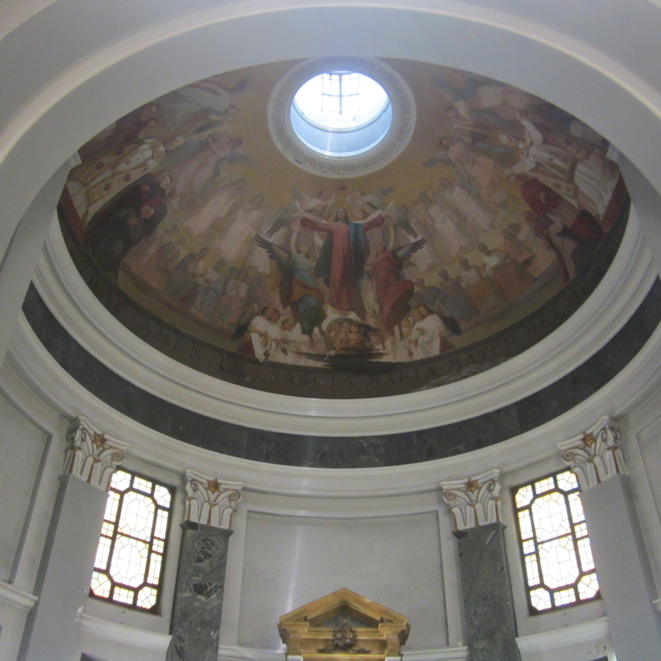 La cappella, dalla architettura romanica estremamente sobria, riconoscibile soprattutto per la presenza di un'abside semicilindrica, fu edificata attorno al 1220: la tradizione vuole che sia stato San Francesco a suggerirne la costruzione per ottenere la protezione dalla grandine.