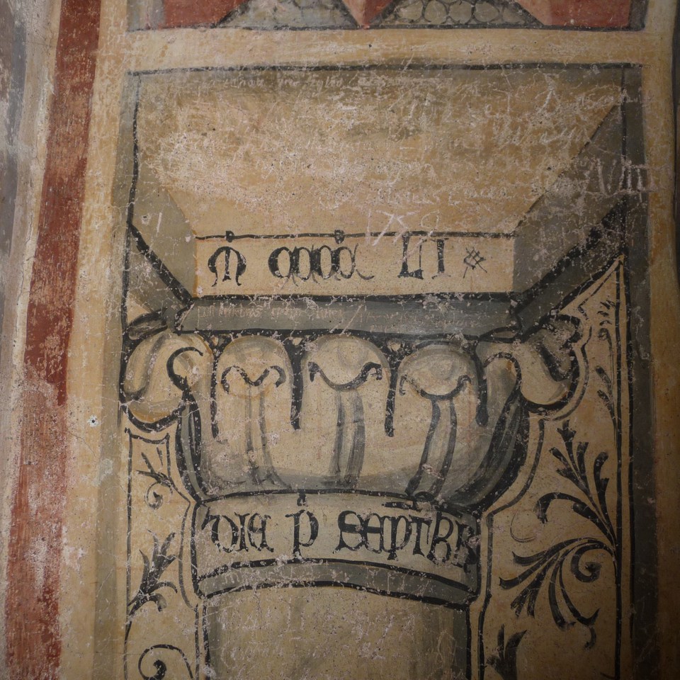 Le pareti laterali sono anch’esse affrescate: la maggior parte degli affreschi giaceva, prima del restauro, sotto lo scialbo.