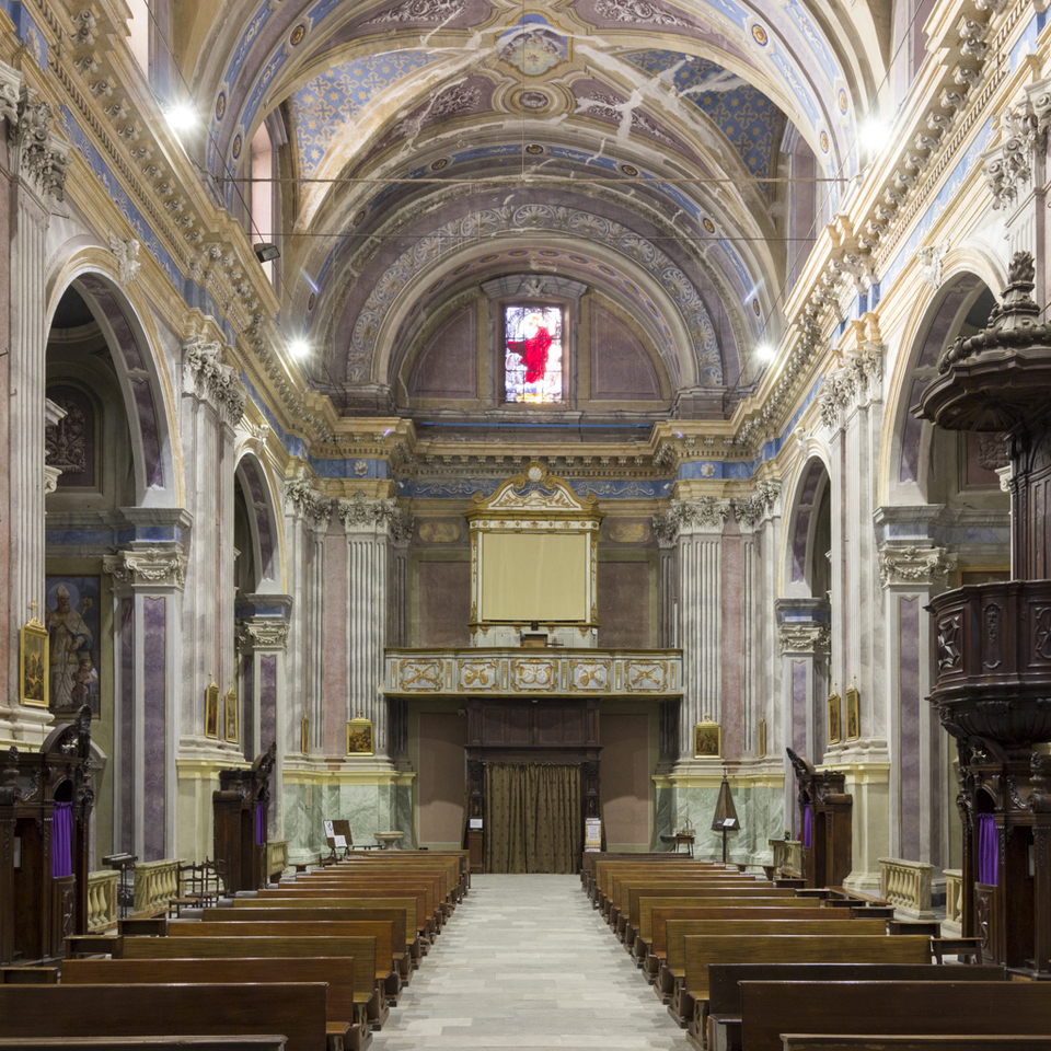 Per l’accompagnamento delle funzioni completa la chiesa un organo posto in controfacciata, su tribuna lignea, attribuito a Giacomo Filippo Landesio e databile alla metà del XVIII secolo: risulta essere quindi uno di più antichi, se non il più antico, della Città.