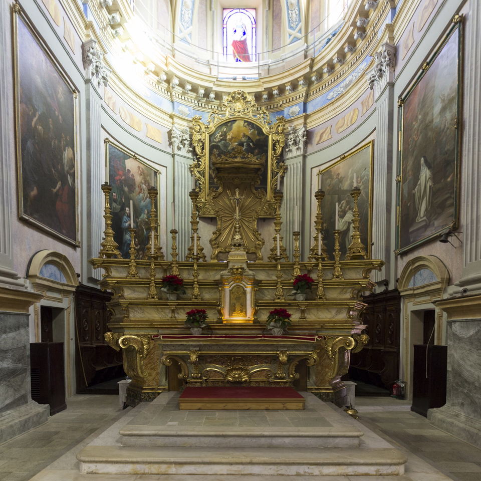 Circa 25 anni fa, il settecentesco altar maggiore dedicato a San Verano fu diviso in due parti. L’imponente parte superiore incorporante il tabernacolo fu spostata nella cappella del Sacramento, mentre l’altra parte è rimasta a ricostituire il nuovo altare. Nel presbiterio è esposto un quadro di ignoto raffigurante Santa Cecilia protettrice dei musicisti, mentre sul coro barocco si susseguono altri dipinti senza autore dell’Assunta con gli apostoli, di San Francesco di Sales, di San Verano attorniato dai santi apostoli Pietro e Paolo, di San Tommaso che accoglie a braccia aperte Gesù mentre scende dalla croce, e infine di Santa Maria Margherita Alacoque, la veggente del Sacro Cuore di Gesù.
