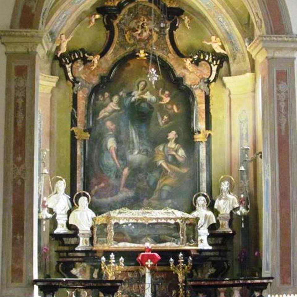 In fondo alla navata sinistra, a lato del presbiterio, sopra la porta d’ingresso della cappella laterale, si trova il trittico attribuito a Cesare da Sesto (XV/XVI secolo), che rappresenta San Martino, San Rocco e San Gerolamo.