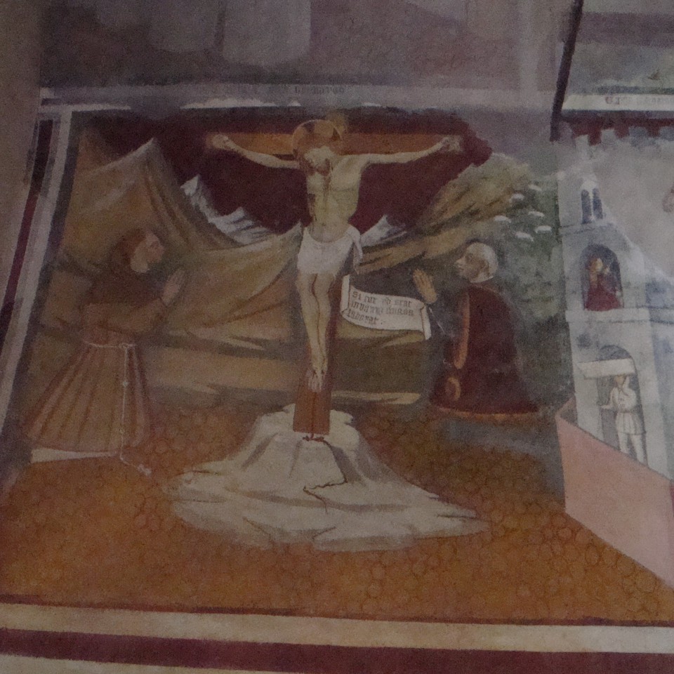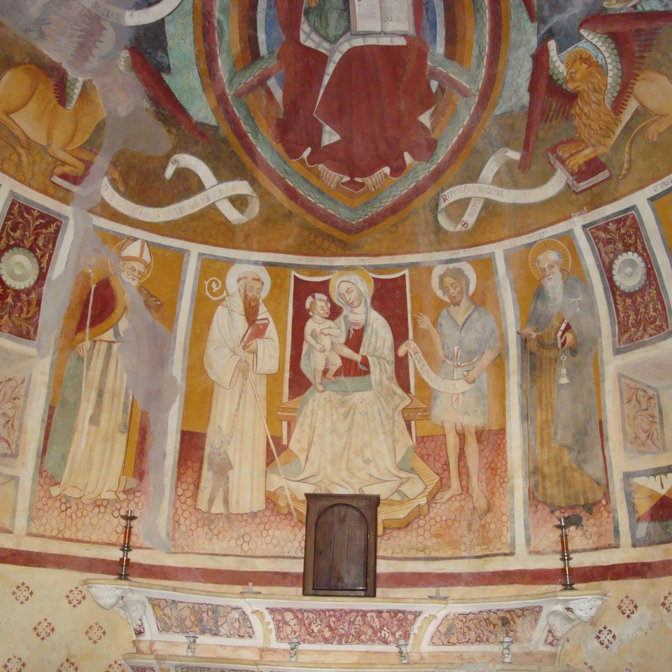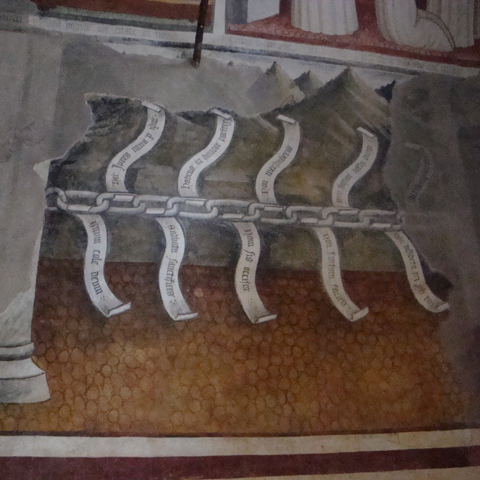 Immersa nei castagneti a monte dell’abitato, con affreschi quattrocenteschi, attribuiti di Segurano Cigna, mostra sulla parete di destra il santo che consegna ad un confratello i dieci comandamenti E una originalissima, e forse unica, iconografia dove i comandati sono scritti su bianchi cartigli attaccati ad una robustissima catena, simbolo evidente della forza della legge divina e del vincolo che costituisce per l'uomo.