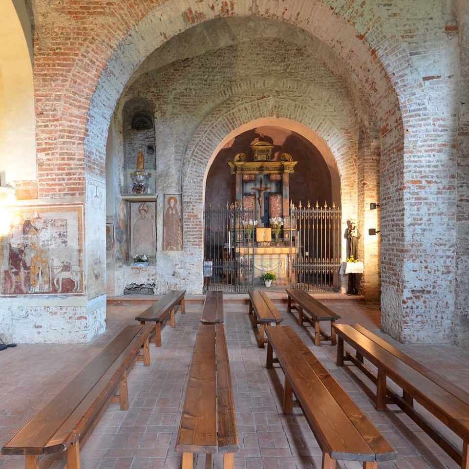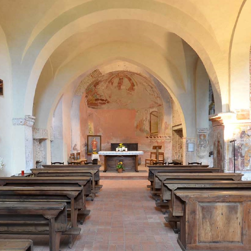 L’abside di Santo Stefano conserva all’interno gli affreschi del Cristo Pantocratore con i simboli degli evangelisti e le figure degli apostoli. Altri affreschi, risalenti alla fine del XIV secolo o all'inizio del XV secolo, rappresentano l’Annunciazione, la Natività, l’Annuncio ai pastori, l’Adorazione dei Magi. Inoltre, sui pilastri e sulle pareti dell'aula vi sono altri affreschi rappresentanti i santi, tra i quali Sant’Antonio Abate, Sant’Eusebio, Santa Maria Maddalena.
