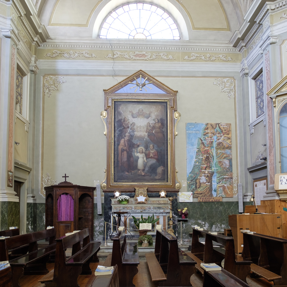 Completano l’arredo liturgico un seggio, il crocifisso, la statuetta dorata della Madonna posizionata nella nicchia sulla sinistra all’inizio del presbiterio, il confessionale, i quadretti della Via Crucis e i banchi in legno.