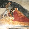 All’interno della chiesa sono inoltre presenti scene della vita di Santa Margherita d’Antiochia: originaria della Pisidia, era figlia di un sacerdote pagano e venne affidata a balia ad una donna che si era convertita segretamente al Cristianesimo e che educò la bambina alla propria fede. Ritornata dal padre, Margherita si manifestò come cristiana e fu da questi cacciata; tornata dalla balia, si diede all’attività del pascolo delle greggi. Notata nei campi dal prefetto romano Ollario, fu da questi richiesta in sposa; Margherita oppose il proprio rifiuto in quanto votatasi alla verginità. Fu quindi imprigionata e condotta in prigione. Qui il diavolo le apparve sotto le sembianze di un drago che la inghiottì, ma la santa si erse con la croce tra le mani e squarciò il ventre della bestia. Portata a giudizio, fu successivamente condannata a morte per decapitazione e uccisa nel 290. In virtù della rappresentazione della scena dell’uccisione del drago, Margherita è invocata dalle puerpere per ottenere un parto facile.