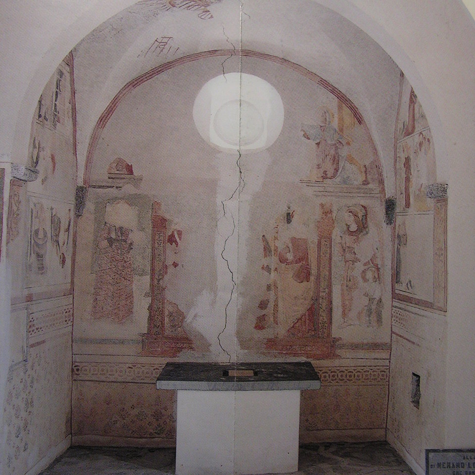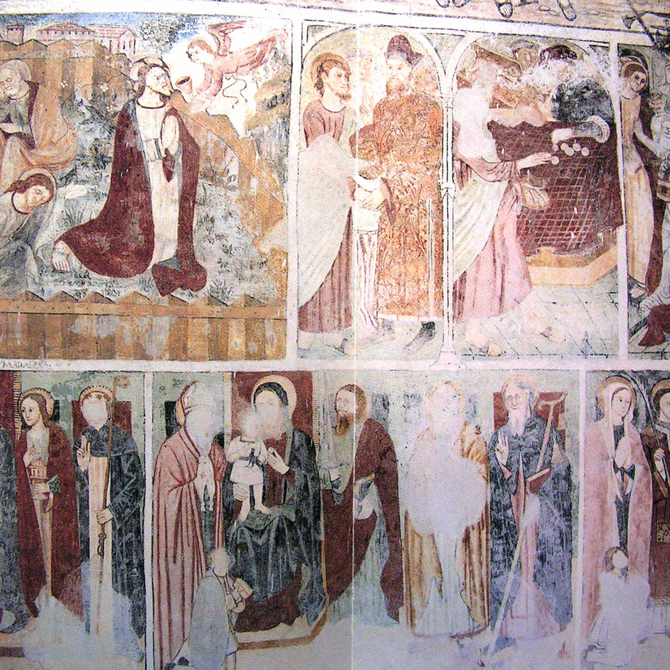 Restorations undertaken between 1968 and 1969 allowed the recovery of the wall paintings featuring stories of Santa Margherita d'Antiochia in the apse, according to the legend handed down in the 13th century by Jacopo da Varazze, and episodes from the life and Passion of Christ which still decorate large portions of the right wall and the counter-façade. They are attributed to Pietro Guido da Ranzo, an artist who was active throughout the Arroscia Valley at the beginning of the 16th century, whose simple, immediate and effective style gave voice to the religious spirit of the mountain people. We also find it in the Stories of the Passion of Christ which he painted in the Sanctuary of Nostra Signora delle Grazie at Montegrazie between 1524 and 1530.
