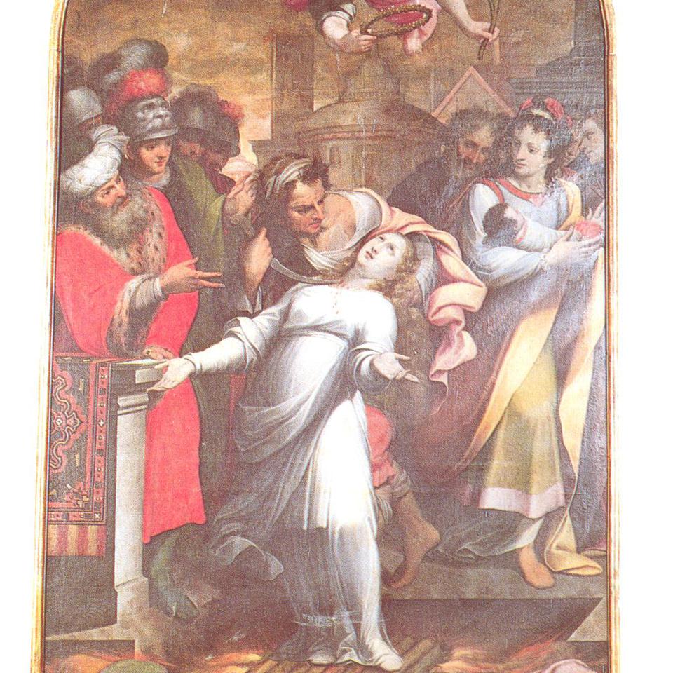 Entrambe le Sante a cui la chiesa è intitiolata incarnano il simbolo del bene che trionfa sul male, della donna virtuosa che non cede alle tentazioni del diavolo e della carne, con chiaro intento di celebrazione della nobildonna che volle l'edificazione della stessa.