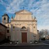 L’aspetto attuale della facciata si deve agli interventi della fine del XVII secolo. Il campanile si innalza all’incrocio dei bracci del transetto e risale alla seconda metà del XVI secolo.