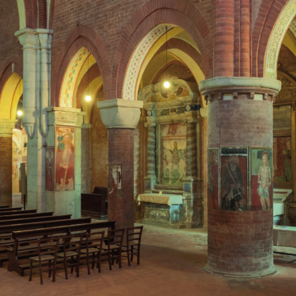 Con il XIV secolo inizia per l’Abbazia un periodo di forte crisi spirituale ed economica, sino a quando nel 1478 Sisto IV non muta l’Abbazia in Commenda, favorendone una rapida ripresa economica. A testimonianza di questo periodo di “rinascita” la decorazione pittorica, eseguita dal pittore castelnovese Franceschino Boxilio, ancora visibile su alcune pareti e pilastri.
