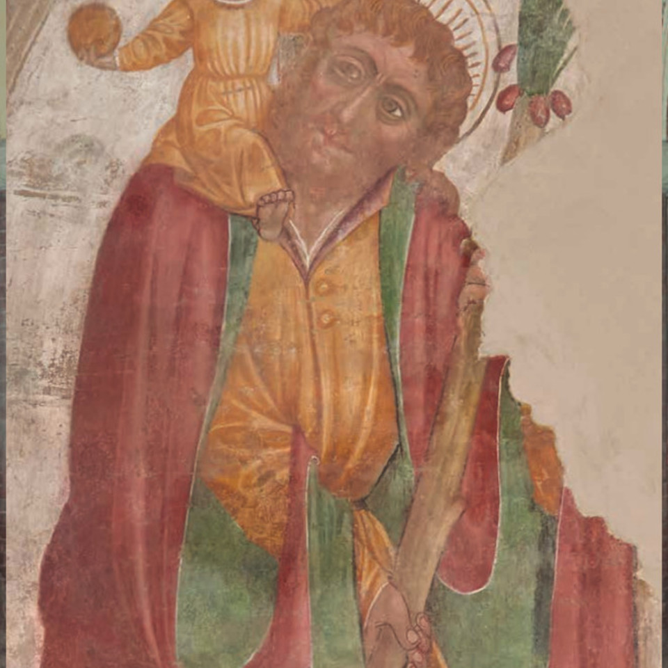 Sulle colonne e sulle pareti della chiesa abbaziale le immagini affrescate della Vergine e dei Santi che accompagnano il fedele verso Cristo.