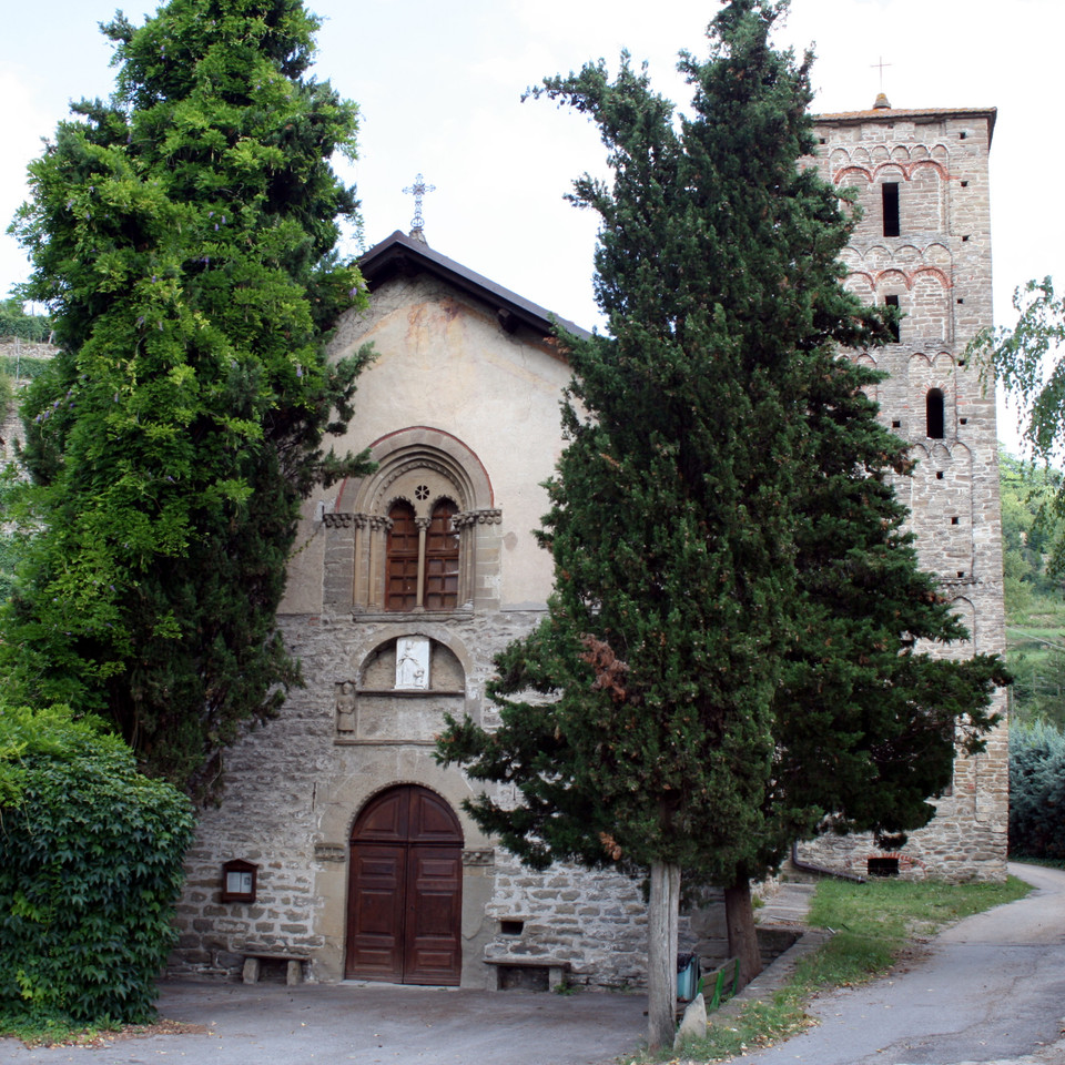 Splendido edificio di impianto romanico, la cui esistenza è già attestata dal X secolo, accoglie il visitatore che superi il torrente Uzzone verso Monte Uliveto con le austere murature in pietra arenaria, impreziosite da semplici decori.