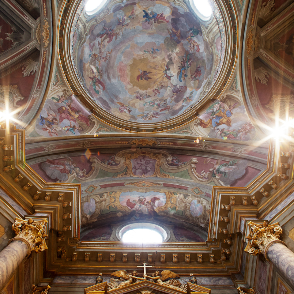 Nel 1765 venne affrescata da A.M. Milocco e C.B. Bianco la cupola. Nel 1830 venne realizzato su progetto di C. Barabino l'ampliamento del coro. La facciata della chiesa, su disegno barocco, fu ultimata su disegno di C.Ponzo soltanto nel 1890-91, mentre il grande portale in legno è del 1931