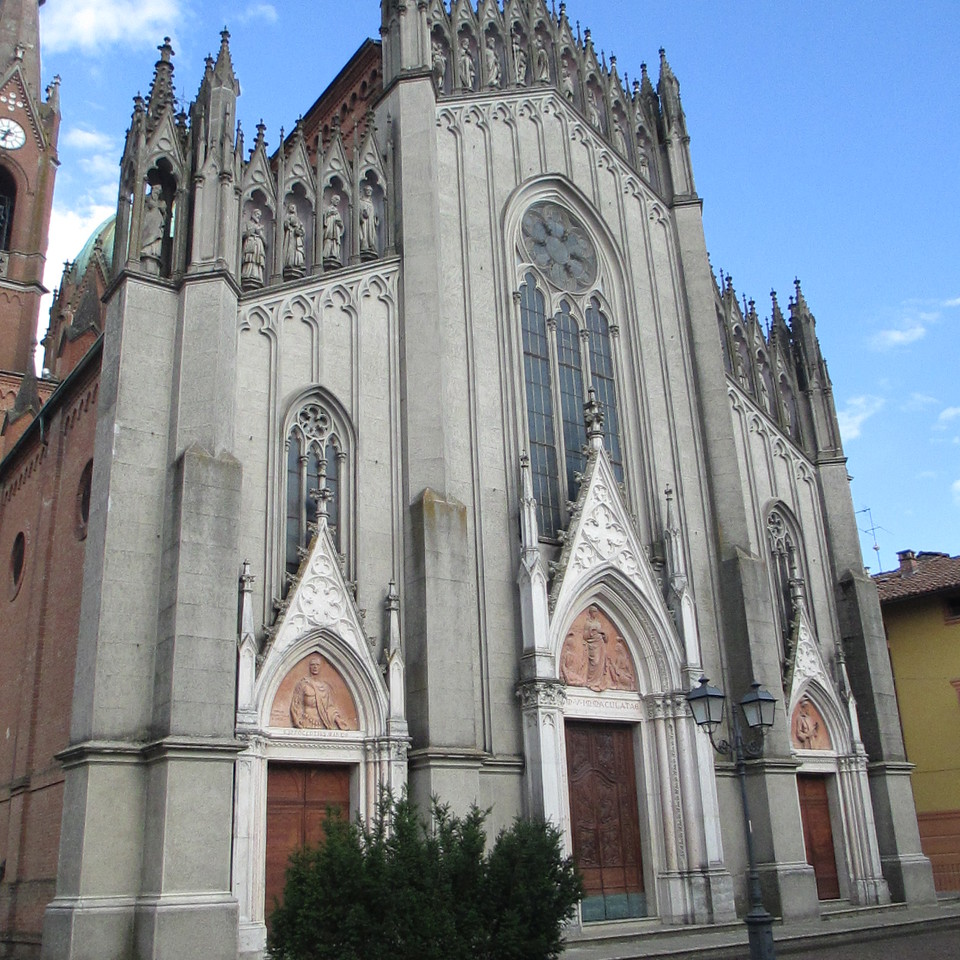 La presenza dell’atelier Gualandi in Piemonte ed in particolare a Sezzadio, Fontanile, Castel Boglione, dove vennero edificate tra la fine del secolo XIX e gli inizi del XX tre imponenti chiese, è ancora poco studiata.