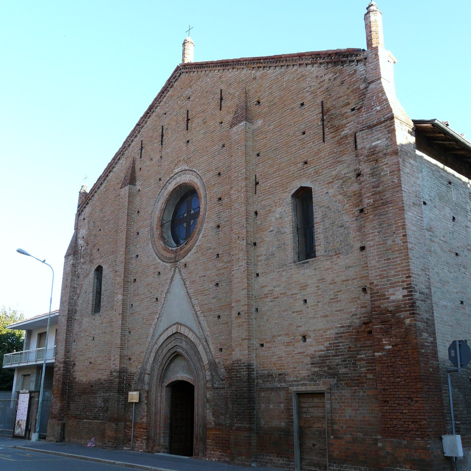 L’edificio attuale, costruito interamente in cotto, risale ai secoli XIII e XIV. La facciata a capanna, scandita da quattro contrafforti, è tipica del gotico piemontese e lombardo, mentre il portale, con altissima cornice cuspidata in terracotta, richiama modelli più strettamente piemontesi.