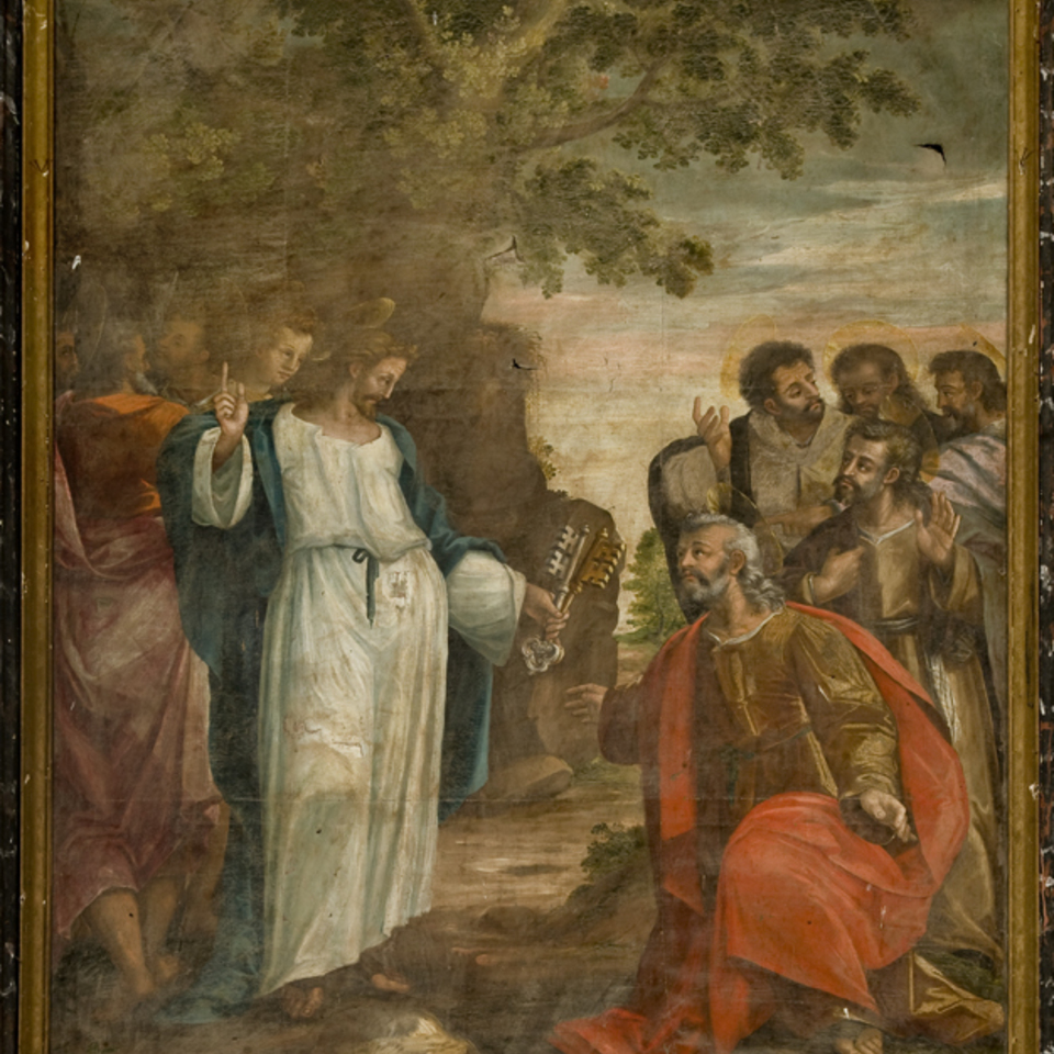 Gli interessi per l'abbazia dimostrati dalla famiglia dei marchesi di Saluzzo sono ricostruibili per lo meno sino al 1605, allorché riveste la carica di priore Vittorio Saluzzo della Manta: a tale momento storico può essere ricondotta la pala del presbiterio raffigurante La consegna delle chiavi a Pietro, opera assegnata dubitativamente al pittore manierista Carlo Dolce e in grado di evocare le scelte di gusto operate nell'antica parrocchiale della Manta, presso il Castello.