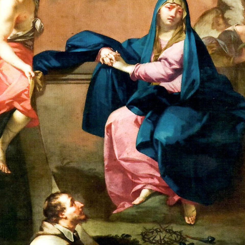 San Giovanni Nepomuceno in venerazione dell'Immacolata opera di Vittorio Blanchery e Vittorio Amedeo Rapous, (1753-1763): in ambito piemontese un interessante caso di studio per la grande diffusione e la diversificazione delle sedi di destinazione riguarda San Giovanni Nepomuceno. Si tratta di un culto popolare spontaneo, prevalentemente legato alle spiccate attività di taumaturgo e ai numerosi miracoli compiuti dopo la morte. Ferventi estimatori della promozione del culto di San Giovanni furono i filippini torinesi che si occuparono di diffondere una biografia ufficiale. Sembra inoltre riscontrabile un legame preferenziale con le confraternite di San Giovanni decollato. I documenti dell'archivio della Misericordia di Torino consentono infatti di precisare le tappe del culto: dai registri di conto dell'Associazione di San Giovanni Nepomuceno, formalmente approvata da Mons. Roero nel 1751, emergono gli interventi per le celebrazioni legate alla festa e al rinnovo dell'altare. Una statua del santo, già in loco, è sostituita dalla pala di Beaumont, ultimata con la collaborazione dell'allievo Rapous, raffigurante il Santo in adorazione dell'Addolorata, mentre un puttino in basso raccomanda il silenzio.