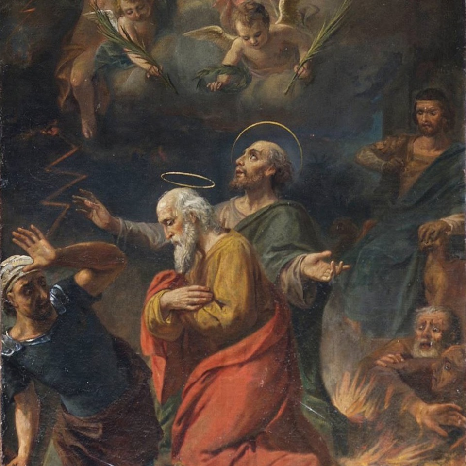 All’interno della chiesa ai lati del presbiterio, in riferimento ai due martiri, sono visibili due tele di fine Ottocento di ambito torinese che ripercorrono la condanna al martirio e la decollazione.