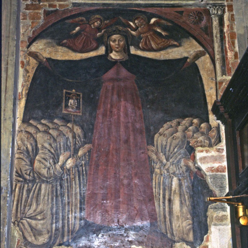 In controfacciata si segnala un affresco del XV secolo, rappresentante la Madonna della Misericordia, attribuito a Quirico Boxilio da Tortona.