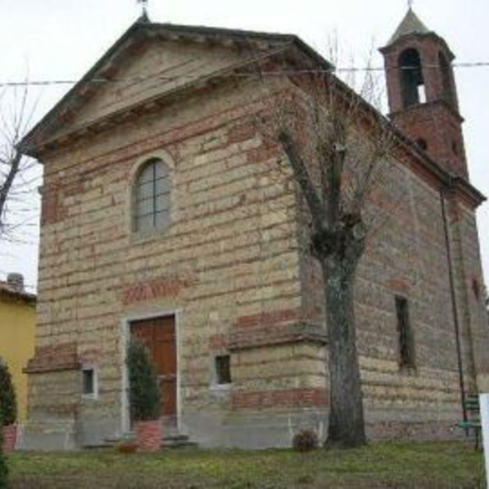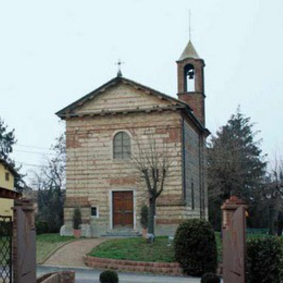 Orientata verso nord, è a pianta rettangolare, con muratura a corsi alterni di arenaria e di mattoni. Presenta un piccolo campanile sul lato destro, con campana datata 1781. L’interno è a una sola navata con volta a botte e prende luce da tre finestre, una sopra la porta d’ingresso e due nelle pareti laterali. Il presbiterio, con volta a cupola, è sollevato di un gradino. Un leggero cornicione separa le pareti dalle volte. A destra dell’entrata si trova un bassorilievo in marmo bianco, già inglobato all’esterno nella parete di fondo e trasferito in loco nel 1989 a cura della Sovraintendenza per i Beni Ambientali e Culturali del Piemonte. Vi sono scolpiti i busti di due donne appaiate, tuttavia la presenza di un drappeggio, a lato della donna più giovane, fa intuire la presenza di una terza figura. E’ stato datato, per mezzo dell’analisi del carbonio-14 al III secolo d.C. ed è possibile ritenere che si tratti di un frammento di una stele funeraria, forse appartenente a proprietari terrieri che disposero di essere sepolti nel fundus anche se alternavano il soggiorno rurale con quello urbano.