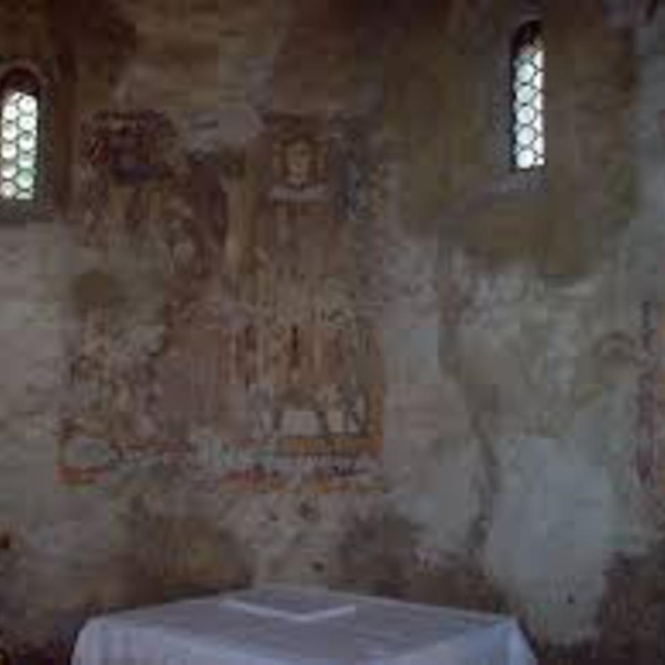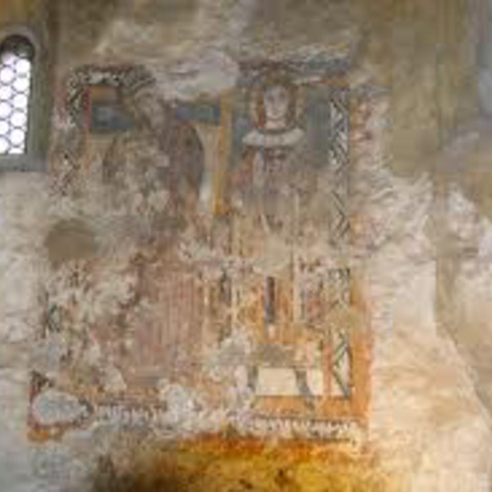 All'interno affreschi da attribuire al Maestro di Oropa (1318-1319) e frammenti di affreschi risalenti alla fine del '200.