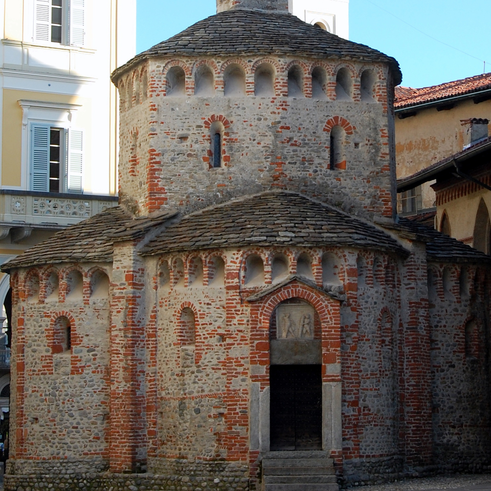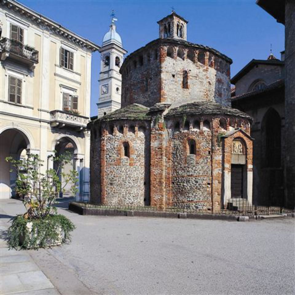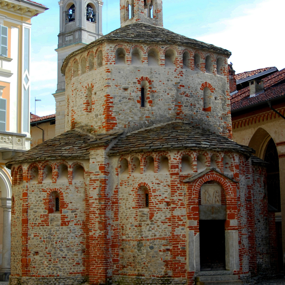Edificato su un sepolcreto romano all'inizio dell'XI secolo, il Battistero di S.Giovanni Battista è una piccola costruzione in ciottoli e laterizi a pianta quadrilatera, con quattro absidi semicircolari separati da robusti contrafforti che sorreggono il tiburio ottagonale, sormontato da un tiburio di epoca più tarda.
