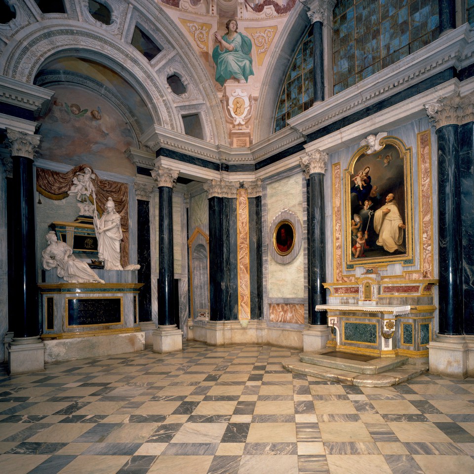 È un esito mirabile, frutto della perfetta sintonia fra il pittore figurista e il decorato¬re quadraturista, che vi lavorarono dal 1746 al 1748.