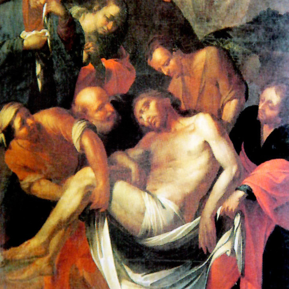 Partecipano all'evento la Carità, la Speranza, le Virtù cardinali e quattro dottori della Chiesa ( Ambrogio, Gregorio, Agostino e Gerolamo).