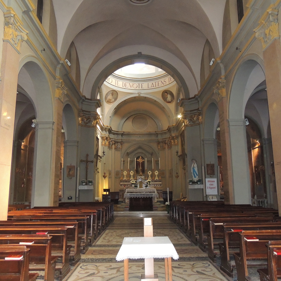 L’interno della chiesa è suddiviso in tre navate, illuminato da un’ampia cupola impostata sul presbiterio e da alcune finestre lungo la navata di sinistra. La zona presbiteriale è costituita dal complesso dell’altare maggiore databile alla fine sec. XIX), con affreschi di Luigi Maria Sabatelli (1818-1899). L'adeguamento liturgico a visto il riutilizzo degli elementi lignei del pulpito per la realizzazione del leggio e della mensa.