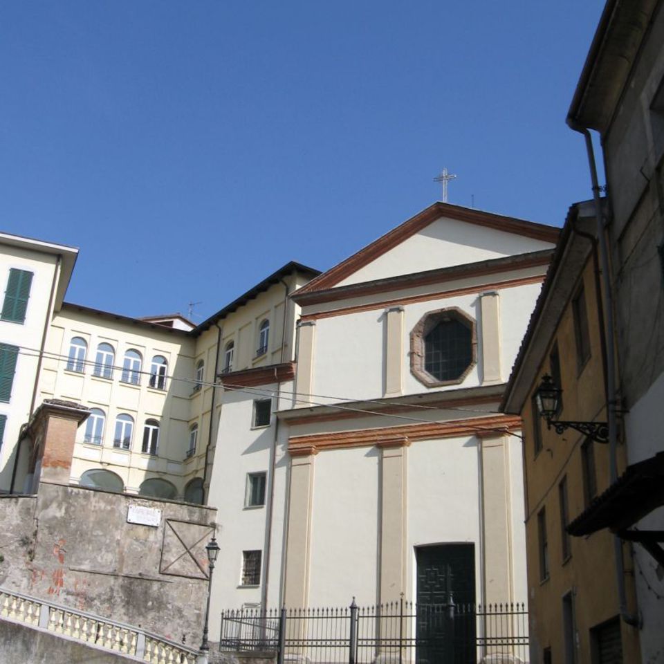 L'edificio venne aperto al culto l'8 dicembre 1594 come chiesa del convento dei Padri Agostiniani, insediatisi a Serravalle col consenso del governo spagnolo. Il loro convento, edificato sul lato a monte della chiesa, venne chiuso con le soppressioni napoleoniche e trasformato in Ospedale. La chiesa dell'ex convento agostiniano venne ripristinata al culto nel 1815 e fu assegnata da allora alla confraternita dei Bianchi.