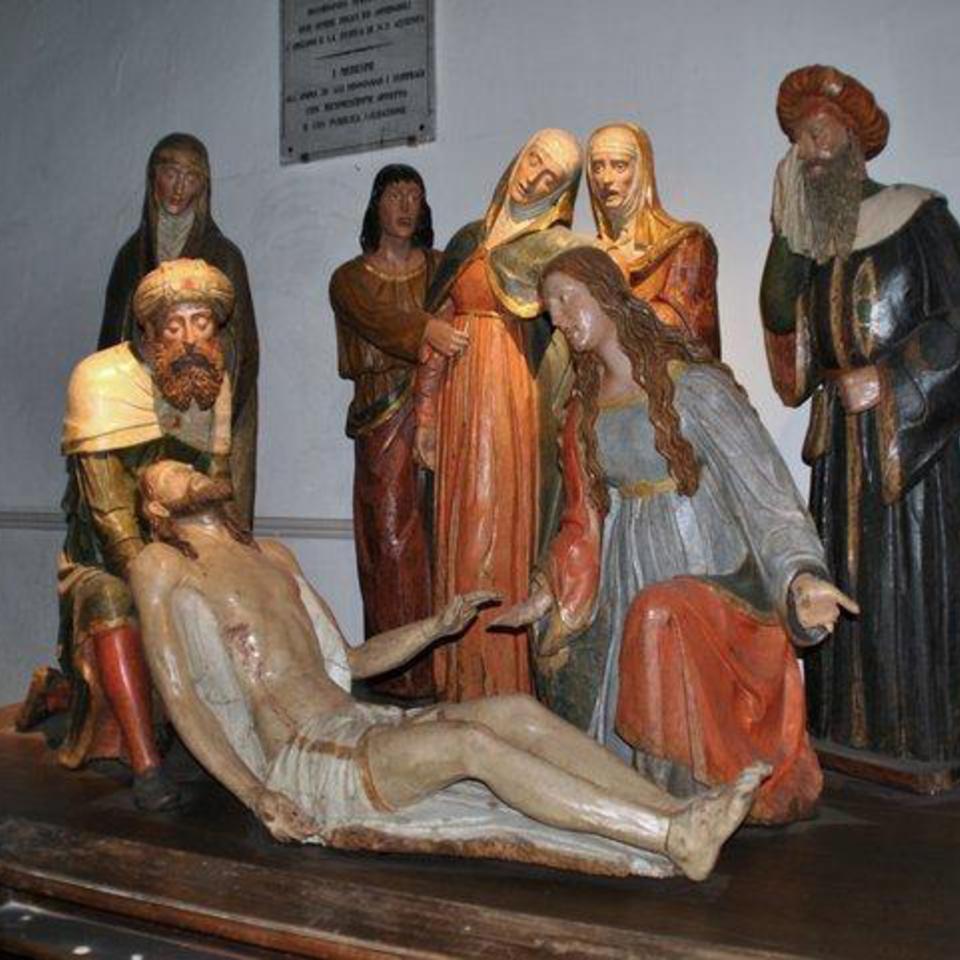La chiesa conserva al suo interno una serie di opere d'arte di sicuro interesse, tra le quali si segnala il gruppo ligneo della Deposizione di Cristo, "Il Compianto", databile tra il XV ed il XVI secolo. Sebbene rimasto per molto tempo quasi dimenticato nei depositi della chiesa (considerato il fatto che sino agli anni ‘80 soltanto la statua del Cristo veniva esposta al pubblico, in occasione delle solennità della Settimana Santa), il Compianto rappresenta l'opera artistica più singolare del patrimonio artistico di Serravalle. Il complesso scultoreo è costituito da 8 figure lignee, grande la forza espressiva che scaturisce realisticamente dall'umanità dei volti e dei gesti dei vari personaggi.