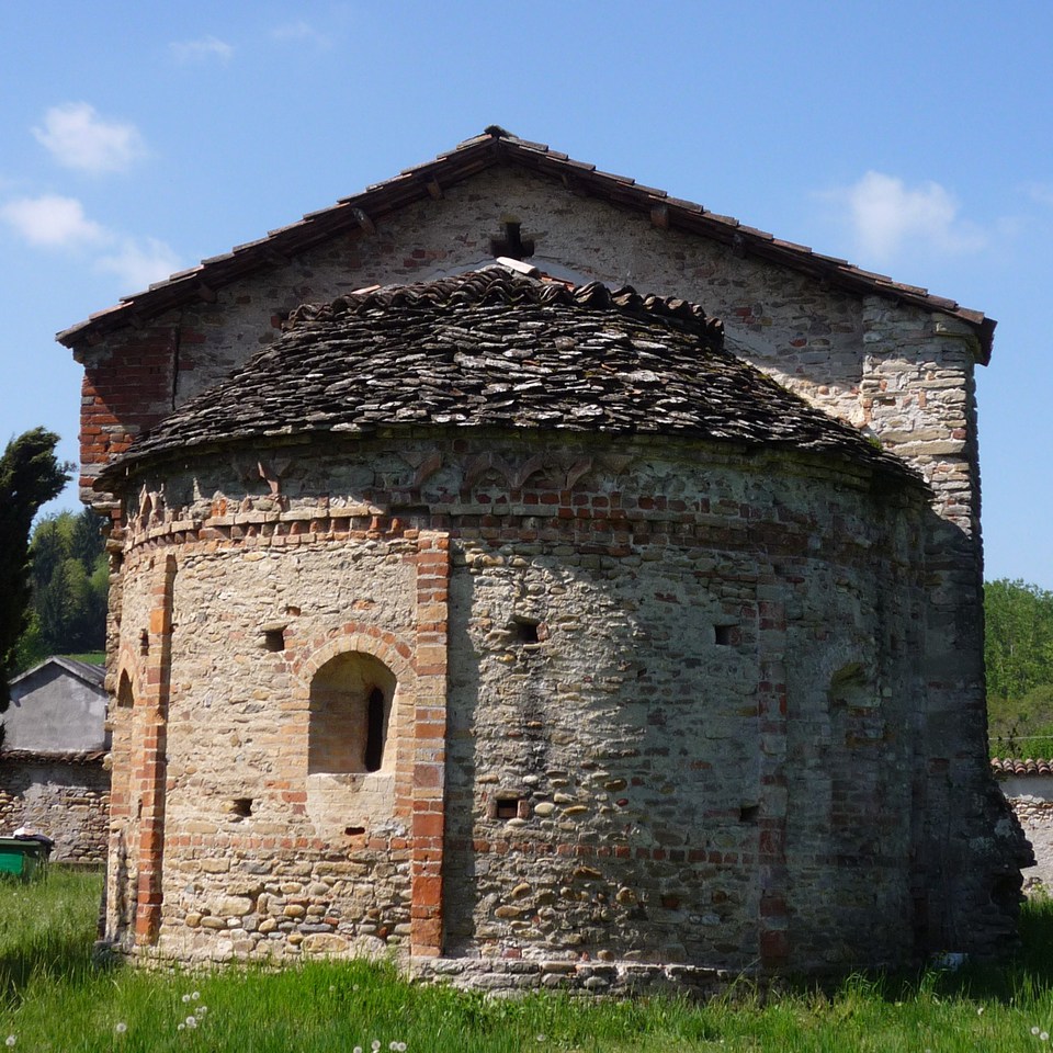 Orientata da est a ovest per simboleggiare il ripetersi quotidiano della vita in Cristo - nascita a levante, morte per tutti gli uomini a ponente - è costruita in pietra naturale, qua e là ravvivata da file di mattoni in cotto posti a spina di pesce o accompagnata da archetti pensili che seguono l’andamento del tetto, verso il 1070 venne ampliata.