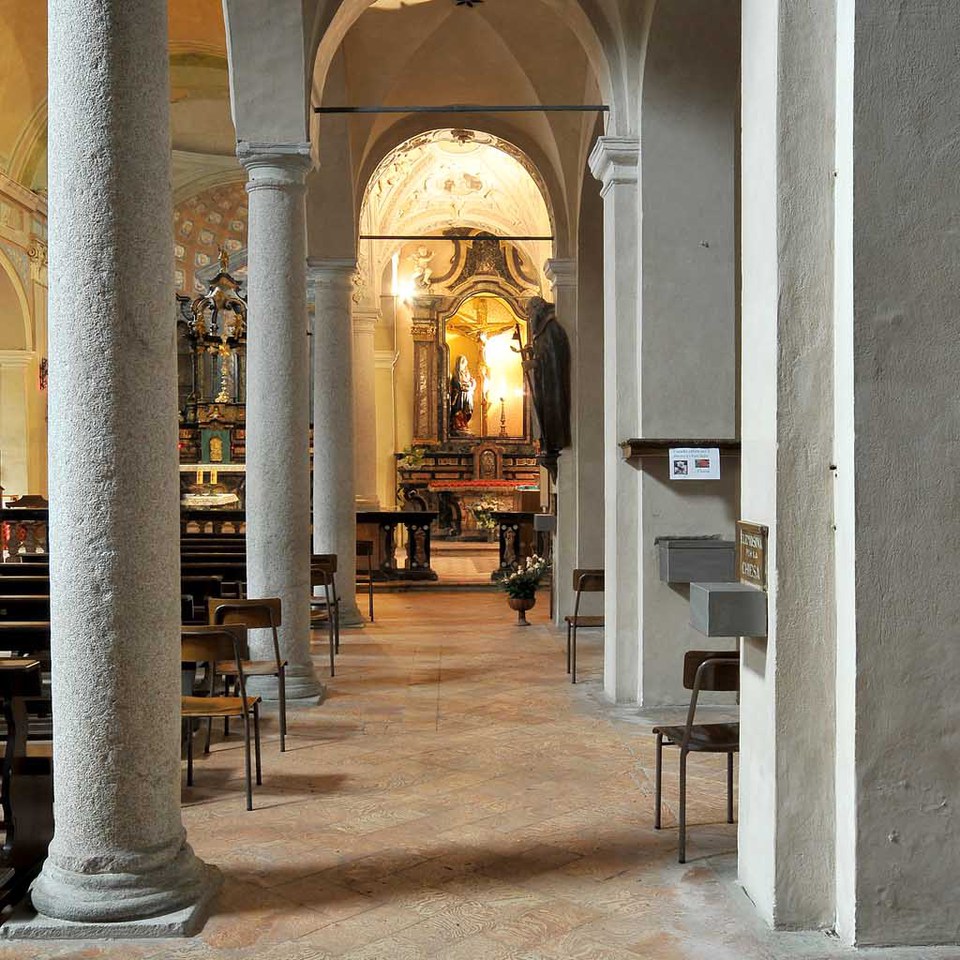 La chiesa ebbe da sempre un’importanza primaria nel paese, anche per la sua centralissima posizione. I primi documenti che la menzionano risalgono al 1440, ma la chiesa ha un impianto certamente precedente, realizzata a croce latina, su tre navate. Dell’impianto romanico originale si ha riscontro anche nel sottotetto dove c’è testimonianza di un’antica abside affrescata. Numerosi sono gli interventi che si sono susseguiti nei secoli, da una datazione sull’ intonaco “1557” si desume una attività cospicua in quel periodo anche se le navate, allo stato attuale, sono più tarde (XVIII secolo). Interessanti gli affreschi, in particolare merita di essere ricordato “Madonna con Bambino” attribuito a Bernardino Lanino (XVI secolo).