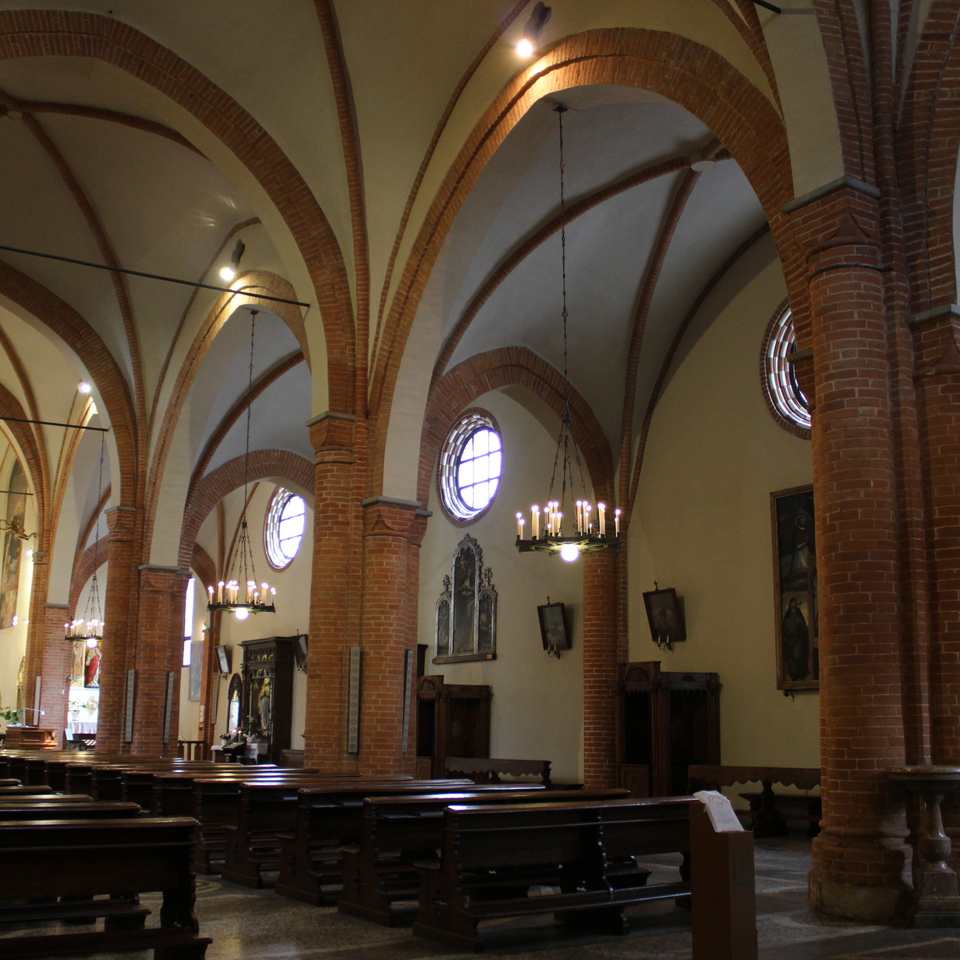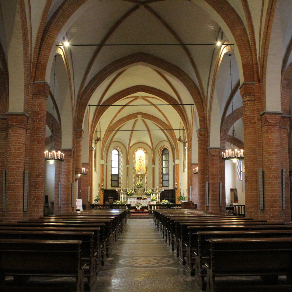 La costruzione della chiesa di Santa Maria del Carmine iniziò intorno al 1320, presto sostituita nella seconda metà del secolo con un altro edificio, più grande e con l’aggiunta di un chiostro, per opera dei Padri Carmelitani, che erano presenti sul territorio già alla fine del XII secolo e che con il contributo di alcune ricche famiglie della città restaurarono la struttura. La costruzione fu ampliata a partire dal 1466, con l’aggiunta della cappella maggiore, ma i lavori continuarono fino al XVI secolo, portando alla realizzazione delle navate, delle altre cappelle e della sacrestia (1576). Nel XVIII secolo la chiesa andò incontro a un periodo di forte degrado, quando dal 1745, al tempo della guerra di successione austriaca, essa fu ridotta a ospedale militare e subì gravi manomissioni. Sul principio del 1800 fu adibita a sede della Guardia Nazionale dal Governo Napoleonico, fino a quando nel 1865 iniziò una fase di restauri che durò fino al 1954, con l’intento di restituirle la sua originaria bellezza gotica. Tuttavia, i restauri hanno modificato l’aspetto originario in nome di una facciata gotica stereotipata, tripartita e conclusa da svettanti pinnacoli e adornata da un portale strombato, in nome dello stile gotico originale. All’interno la chiesa è suddivisa in tre navate da pilastri cruciformi, che sostengono gli archi e le volte a crociera costolonate. Le navate laterali conducono a cappelle a terminazione piana, mentre quella centrale termina in un’abside poligonale. Sono diversi i dipinti custoditi nel tempio, opera di artisti di scuola piemontese come Giovanni Martino Spanzotti e Gaudenzio Ferrari, risalenti al periodo 1550-1560. Si ricordano una Madonna del Rosario (secolo XVI), un polittico del XVI secolo con scene della Crocifissione e Santa Lucia tra le Sante Barbara e Chiara d’Assisi (secolo XVII).