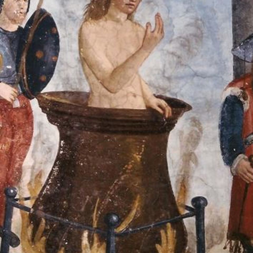 E' la sola cappella della provincia cuneese dedicata a San Giovanni Evangelista che abbia dipinto il racconto dei fatti della sua vita. Il Santo era pregato come patrono degli armaioli, degli apparecchiatori e di tutti i lavori esposti alle ustioni, essendo uscito illeso dal supplizio a Porta Latina, come si vede nel racconto illustrato nella cappella. Era considerato inoltre il protettore delle vedove e delle vergini perchè Cristo gli aveva affidato la Madre dalla Croce ed era venerato contro gli avvelenamenti e le intossicazioni alimentari perchè era sopravvissuto al veleno datogli da Aristodemo. E' raffigurato infatti con l'attributo della coppa dalla quale esce un serpentello.