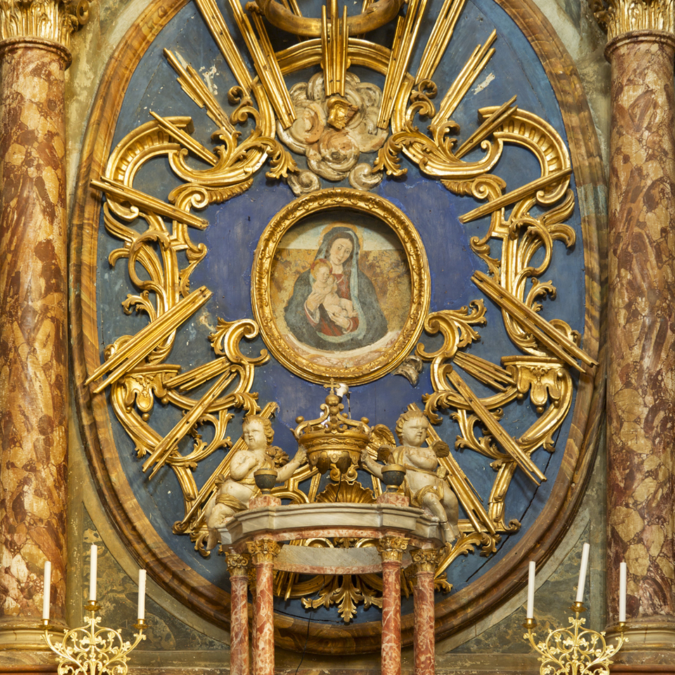 Nel Seicento venne dipinta intorno all'immagine una corona d'alloro sostenuta da due angeli e nel Settecento, per darle maggiore risalto si fece scolpire la cornice lignea dorata che la circonda.
