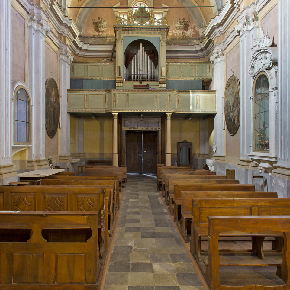 Di grande effetto scenografico è la cornice in stucco della grande tela seicentesca collocata in coro, che raffigura la Madonna in cielo tra San Sebastiano, San Giovanni Battista e San Fabiano. Probabilmente la cornice venne realizzata nella prima metà del XVIII secolo.