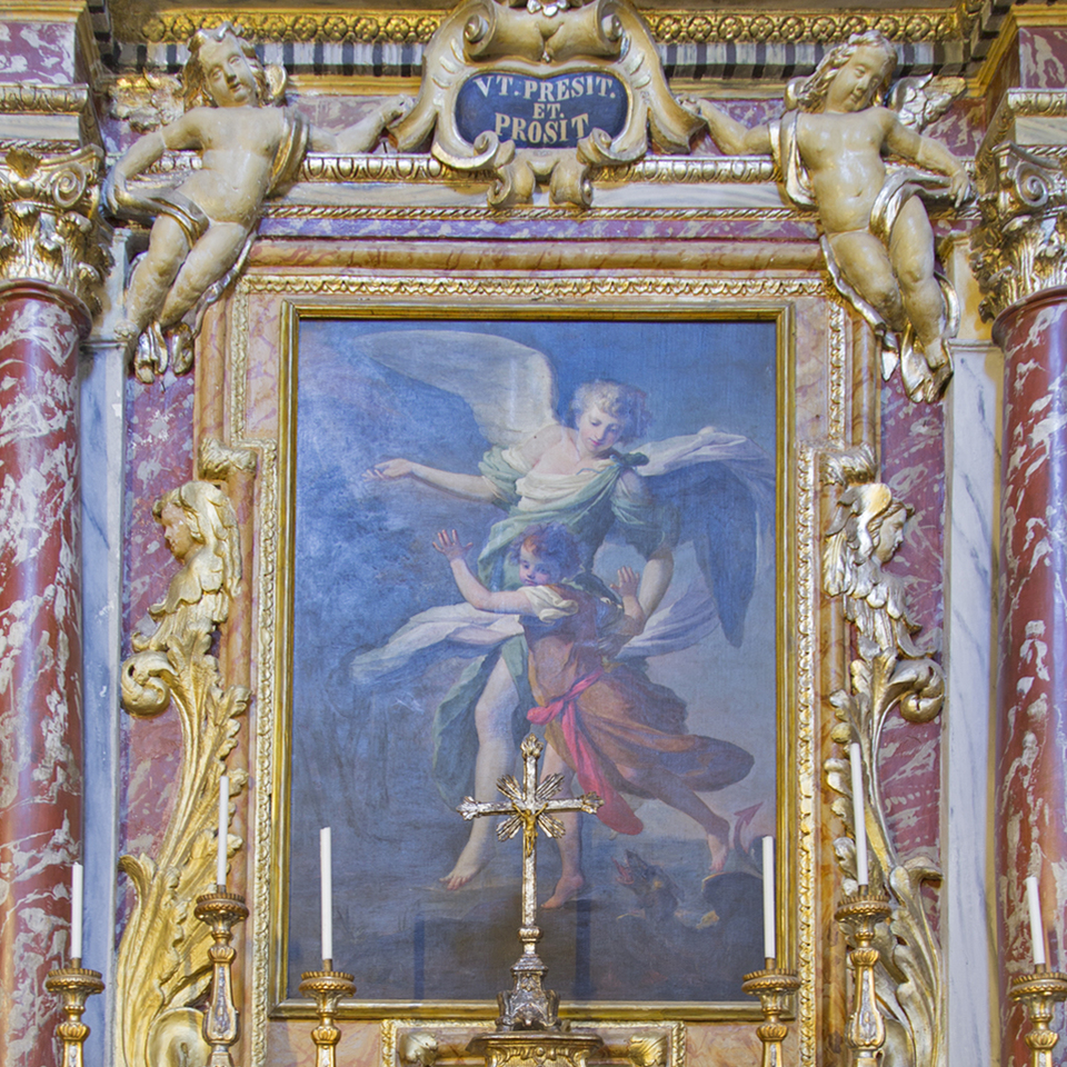L'altare è barocco, in marmo policromo intarsiato, con colonne tortili, costruito grazie all'aiuto di Fiorenzo Zavatteri. A questa famiglia appartiene anche la statua lignea della Vergine della Cintura (con stemma della famiglia) risalente al XVIII secolo.