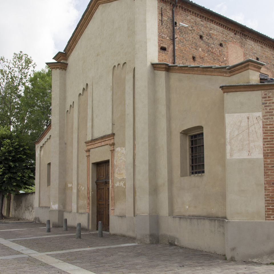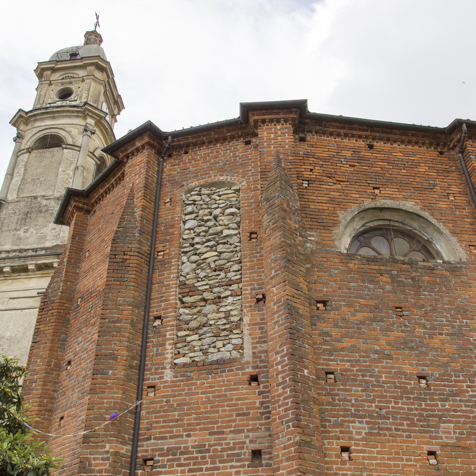 Il campanile, dapprima individuato in una torre di guardia della vicina fortificazione, nel 1830 veniva costruito appositamente in adiacenza alla sacrestia, su progetto di Andrea Cattaneo. La guglia, deperita presto, nel 1878 fu sostituita da un nuovo piano per appoggiarvi l’orologio, il tutto ricoperto da cupola e cupolino.