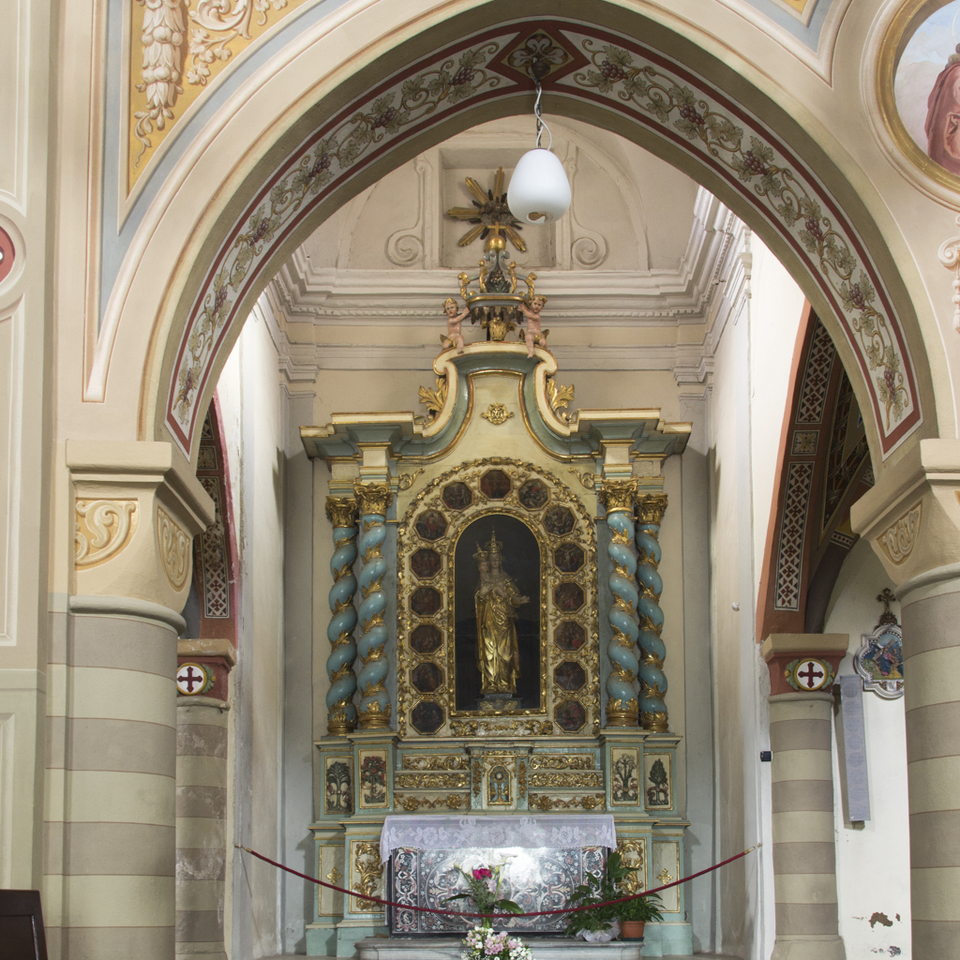 Nella visita pastorale del 1847 si contavano in chiesa, oltre all'altar maggiore, quelli della Natività della Vergine, di S. Giuseppe e S. Anna, del Rosario, di S. Lorenzo, di S. Antonio, di S. Michele, di S. Lucia, del Crocifisso, dell'Addolorata. Alcuni di questi esistono ancora oggi.