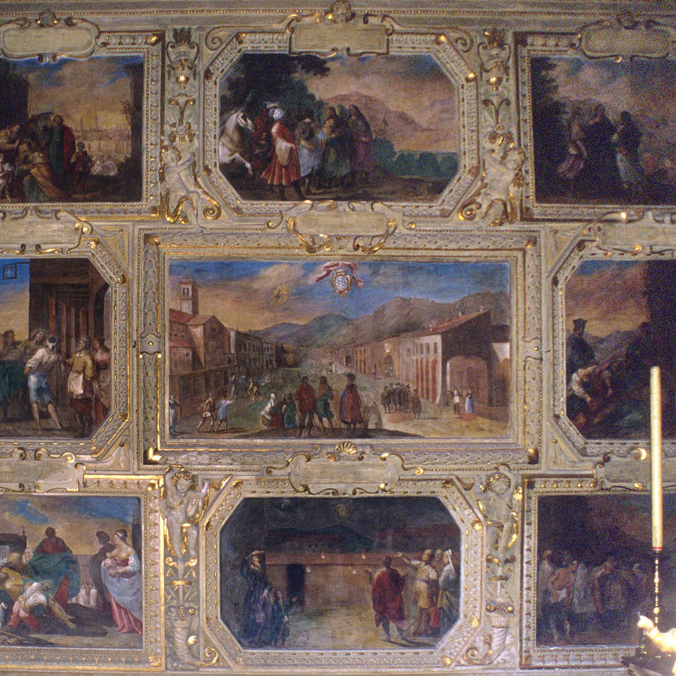 La vita del Santo è illustrata in un ciclo di affreschi dal maestro Giovanni Battista del Sole: