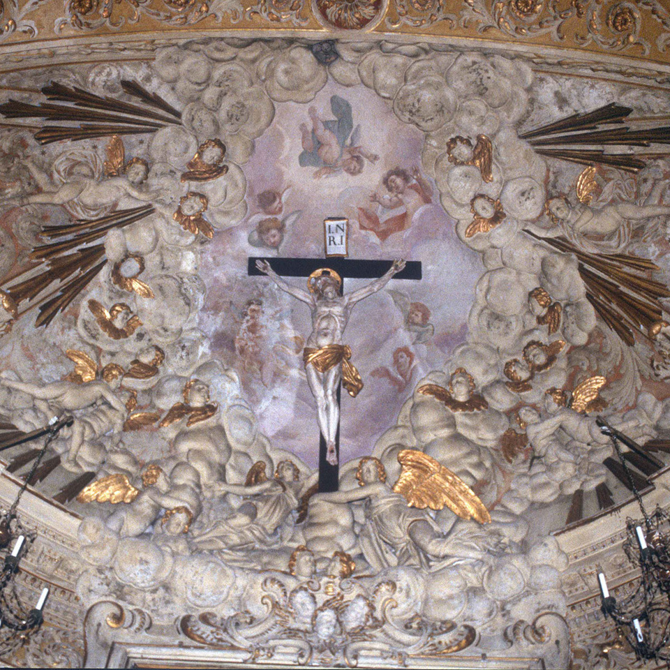 Sulla volta l'affresco rappresenta la Gloria di San Contardo.