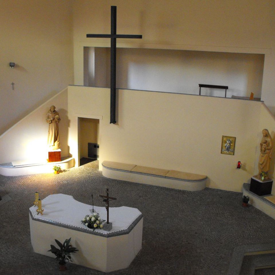 L'11 ottobre 1981 il Vescovo di Novara Mons. Aldo Del Monte consacrava la nuova chiesa, che, su richiesta dei parrocchiani, veniva dedicata alla Santa Croce. Agli angoli della parete di fondo sono state successivamente collocate, una a destra e l'altra a sinistra, due statue in legno grezzo opere artistiche degli artigiani della Val Gardena e rappresentanti rispettivamente la Vergine Maria col Bambino Gesù in braccio e San Bernardino da Siena, scolpite dal signor Prugger. Attualmente (primavera 2005) si lavora alla posa di artistiche vetrate policrome su disegno del pittore Gino Apostolo, realizzate dalla ditta De Antoni di Ornavasso.
