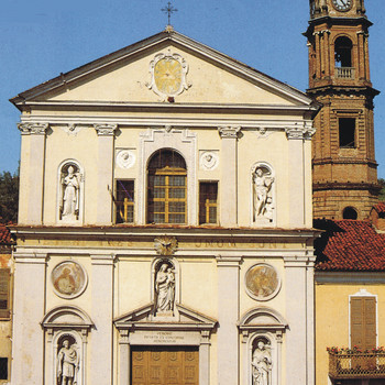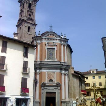 La chiesa sede della confraternita fondata nel 1579 fu costruita nel sec XVI al tempo del vescovato di Giovanni Stefano Ferrero. Sono interessanti il coro ligneo del 1500 e il martirio di san Sebastiano del coro opera di Francesco Bianco.
