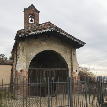 La cappella di San Sebastiano è un piccolo edificio a pianta quadrata di circa 6 metri per lato, con muratura esterna in ciottoli di fiume disposti a lisca di pesce, e sormontata da un campanile a vela.
