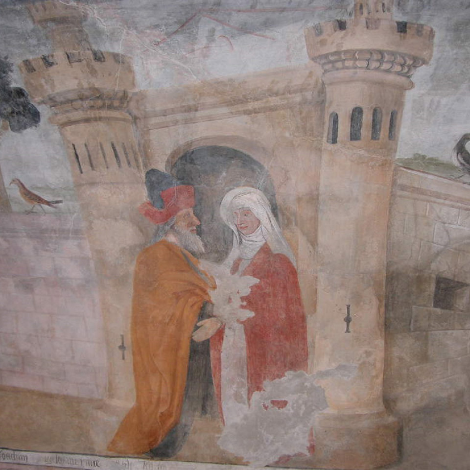 La cappella si trova ai margini della frazione Foresto di Bussoleno, in un'area detta della Posta, a memoria del fatto che in questo luogo avveniva la sosta ed il cambio dei cavalli e delle carrozze che percorrevano la via Francigena. Si tratta di un edificio composto da un unico vano quadrangolare sormontato da un tetto in lose a due spioventi. Sulla facciata principale rimane traccia di un’arcata d’ingresso, ora tamponata e sostituita da una più piccola porta. Non è noto quando la cappella venne edificata, ma al suo interno conserva un ciclo di affreschi dedicato alle storie dell’infanzia della Vergine, tratte dall’apocrifo Protovangelo di Giacomo, realizzato tra il 1475 e il 1490 da Antoine de Lonhy. Il tema iconografico principale è distribuito sulle volte della cappella, nelle quali sono visibili le scene della Cacciata di Gioacchino dal Tempio, il Sogno di Gioacchino nel deserto (da notare la similitudine tra la conformazione urbana di Susa e quella della città murata raffigurata sullo sfondo della scena), l’Incontro tra Gioacchino ed Anna alla Porta d’Oro di Gerusalemme, la Nascita della Vergine. L’area absidale è occupata da un’intensa raffigurazione della Pietà, mentre le pareti laterali ospitano una teoria di santi così distribuiti: a nord San Pietro Martire, San Bartolomeo, Santa Caterina d’Alessandria, San Sebastiano, un santo benedettino (San Mauro?); sulla parete sud: un santo benedettino (San Giusto?), Sant’Antonio abate, San Rocco, un santo vescovo (San Biagio?). Il recente restauro ha anche rivelato, sull’esterno, un’Annunciazione posta sull’arco santo.
