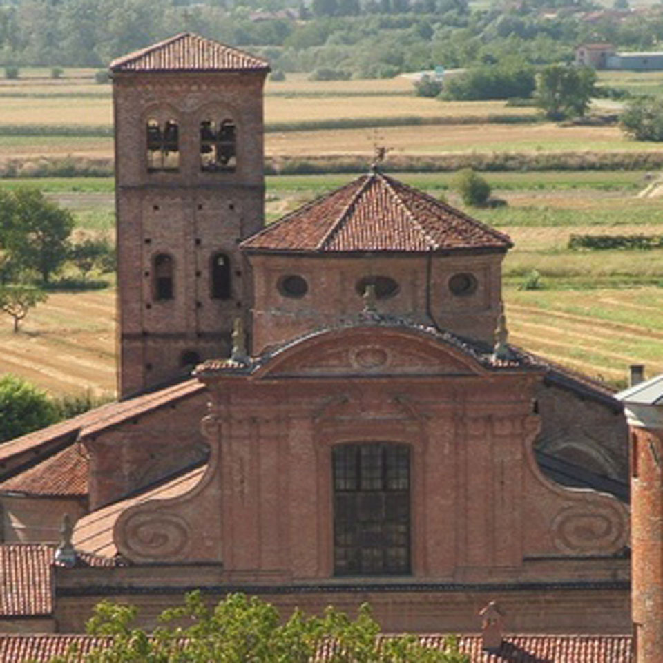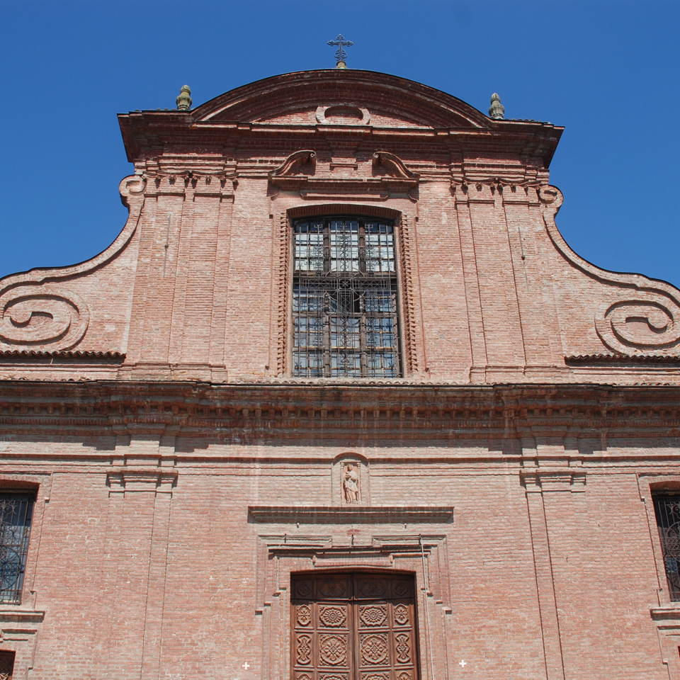 La prima chiesa, esistente dunque almeno dal X secolo, è probabilmente ad aula unica, cui è affiancato un convento all’inizio del Quattrocento, gestito dai Padri Serviti fino al 1807. Nel 1494 la chiesa è ricostruita a tre navate, in stile tardogotico, mantenendo l’antico campanile, mentre la parte conventuale è riedificata nel 1676. Inondata dalla Bormida nel 1647, e bruciata dai francesi nel 1651, della chiesa rimane solo il campanile. Tra il 1665 e il 1717 l’edificio è ricostruito su progetto dell'architetto Guglielmo Trotti secondo l’antico impianto per sfruttare le fondamenta rimaste. Nel 1894 vengono intrapresi i lavori di risanamento degli affreschi interni, opera del pittore Rodolfo Gambini di Milano (1855-1928).