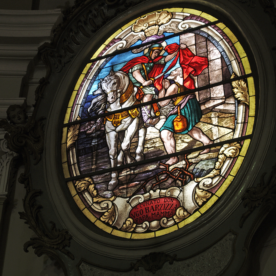 Già la prima costruzione venne dedicata a San Martino, vescovo di Tours nel 400. Dall’osservazione dell’attuale edificio si nota che esso fu ingrandito almeno due volte e che la facciata della chiesa primitiva era posta a Levante. Anche la pianta, un tempo a croce greca con al centro l’altare, è stata modificata e trasformata in pianta a croce latina per esigenze dovute al cambiamento della liturgia. Aumentato il numero dei fedeli, si pensò di ampliarla e di dedicarla al Vescovo San Martino sia perché era morto da poco in concetto di santità sia perché. egli era vissuto a Pavia e a Milano e forse era passato anche da Gamondio. Questo Santo aiutò molto la Chiesa di Milano a mantenere viva la fede cattolica, minacciata dagli eretici Ariani. E’ verosimile, quindi, che San Martino, inviato da Sant’Ambrogio arcivescovo di Milano, abbia visitato Gamondio che apparteneva alla Diocesi Milanese. San Martino di Tours viene ricordato l'11 novembre, sebbene questa non sia la data della sua morte, ma quella della sua sepoltura. Questa data è diventata una festa straordinaria in tutto l'Occidente.