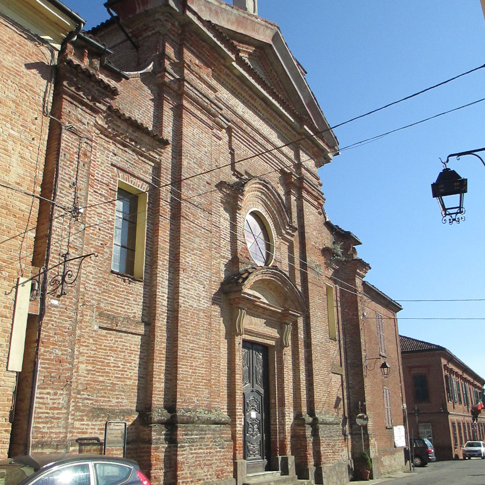 La facciata è in cotto e l’interno a croce latina, con quattro altari nelle rispettive cappelle laterali dedicati al Sacro Cuore, a San Giacomo, alla Madonna del Rosario ed ai Santi Bovo ed Antonio di Padova.