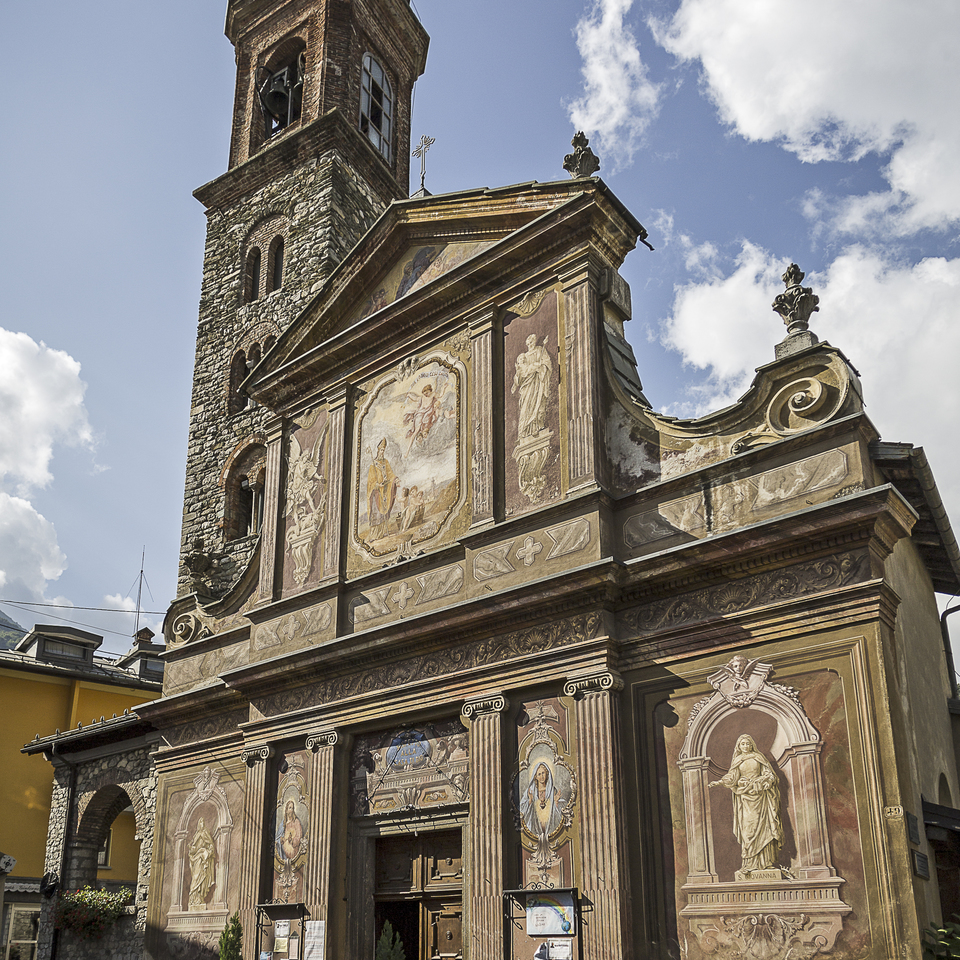Della chiesa antica resta solo parte del campanile, che conserva ancora il paramento in pietra e le bifore. Tra il 1649 e il 1655 la chiesa venne completamente rinnovata, cambiandone l’orientamento e dotandola di un nuovo coro. Le visite pastorali del Settecento descrivono la chiesa con otto altari oltre a quello maggiore e lodano l’altare del Rosario con una ancona decorata con i misteri e le statue di san Domenico e santa Rosa.